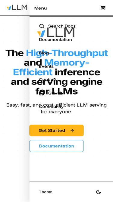 83%High-throughput and memory-efficient inference and serving engine for Large Language Models. Deploy AI faster with state-of-the-art performance.