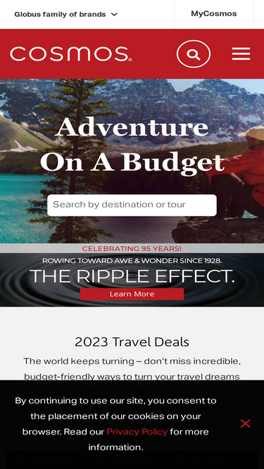 100%for more than 50 years, cosmos has offered affordable guided tours to the world's most captivating places like europe, south america, alaska and africa. book a cosmos guided tour today.