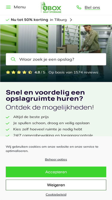 Op zoek naar opslagruimte? Neem contact op met 1BOX voor flexibele en veilige opslagoplossingen. Ons vriendelijke team helpt je graag de perfecte opslagruimte te vinden!