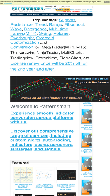 100%at atternsmart.com you can find a complete range of technical analysis tools and services to satisfy diverse consumer needs. whether it's pattern analysis, algorithm development, custom indicator, auto trading strategy, historical price action data mining, script debug or code conversion, we have a solution.