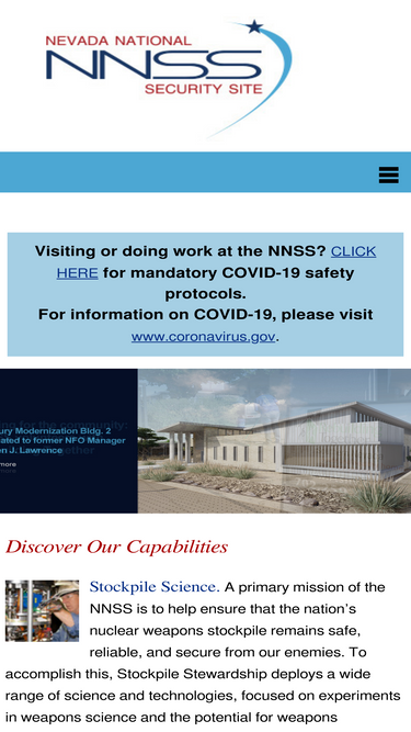 91%Overview A primary mission of the NNSS is to help ensure the nation’s nuclear weapons stockpile remains safe, reliable, and secure from our enemies. To accomplish this, the NNSA Stockpile Stewardship Program deploys a wide range of science and technologies, focused on experiments in weapons science and the potential for weapons dismantlement. Since the United […]