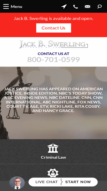 88%Highlight cases from thousands of trials Jack Swerling has been involved with representing clients that have been accused of crimes in South Carolina.