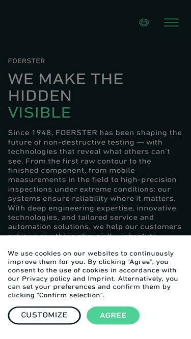 76%Since 1948, FOERSTER has been shaping the future of non-destructive testing — with technologies that reveal what others can’t see. From the first raw contour to the finished component, from mobile measurements in the field to high-precision inspections under extreme conditions: our systems ensure reliability where it matters.