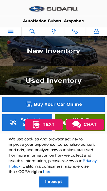 97%shop new & used cars or schedule service at autonation subaru arapahoe! we are your local denver, lakewood, aurora, centennial, & englewood subaru dealer.