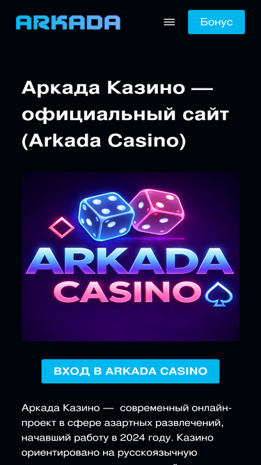84%Официальный сайт Arkada Casino ➤ Регистрация ⚡️ Бонус 450%. Новое зеркало! Дарим 150 FS за первый депозит в казино Аркада.