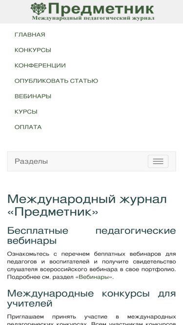 91%международный педагогический журнал «предметник», на сайте журнала можно опубликовать статьи, поучаствовать в конкурсах, конференциях и вебинарах с получением сертификатов.