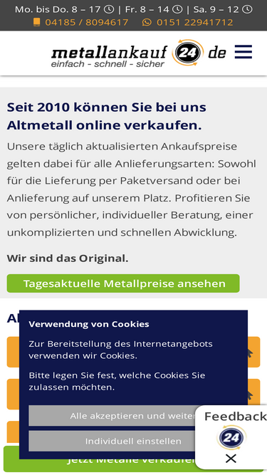 seit 2010 können sie bei uns altmetall online verkaufen. unsere täglich aktualisierten ankaufspreise gelten dabei für alle anlieferungsarten.