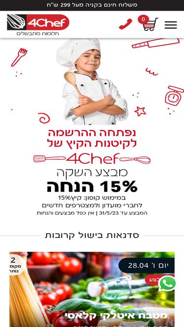 96%שאלות ותשובות - 4Chef הינה רשת חנויות קונספט של מוצרים ואביזרים לחובבי בישול ואפייה, סדנאות בישול וקורסים.