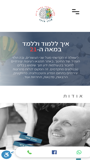 32%ברוכים הבאים לאתר של אורן פרבר ללמוד וללמד במאה ה-21. כאן תוכלו למצוא הרצאות וסדנאות מדעיות וטכנולוגיות לתלמידים, חווית למידה פעילה ומעוררת השראה תוך שימוש בטכנולוגיות חדשות ובכלים מתקדמים שיעניקו לכם כלים להתפתח בעולם משתנה