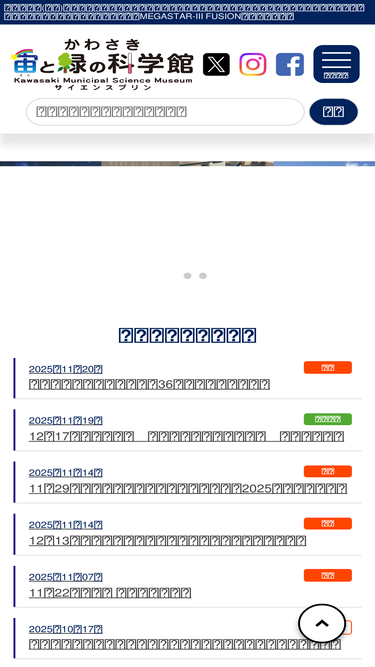 65%「かわさき宙(そら)と緑の科学館」は、生田緑地のなかにある自然系の博物館です。「自然体験」「天文体験」「科学体験」の3つの感動体験をテーマにしています。世界最高水準の星空を映し出すプラネタリウム「メガスターⅲフュージョン」、「川崎の自然」や「天文」をテーマにした常設展示、様々な世代に向けての科学実験や自然体験教室、屋上アストロテラスでの天体観察などを楽しめます。