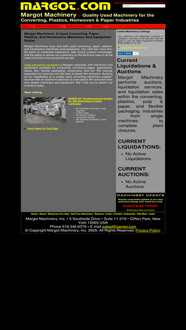 98%margot machinery buys and sells used converting machinery and equipment for paper, paperboard, tissue, film, flexible packaging, nonwovens, and foil. margot machinery is also a supplier of used plastic film extrusion machinery with an extensive selection of used film extrusion lines and ancillary plastic processing equipment.