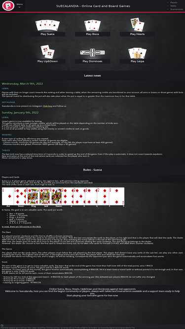 74%Play Sueca, Bisca, Hearts, Up&Down, Dominoes, Lerpa, Solitaire and Checkers online with friends or against the computer.
