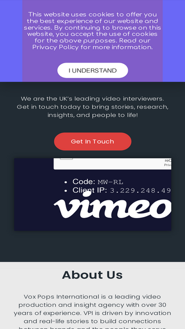 73%Privacy NoticeThis Privacy Notice sets out the data processing practices and policies carried out through the use of the Internet and any other electronic communications networks by Vox Pops International. If you have any requests concerning your personal information or any queries with regard to these practices, please contact the Data