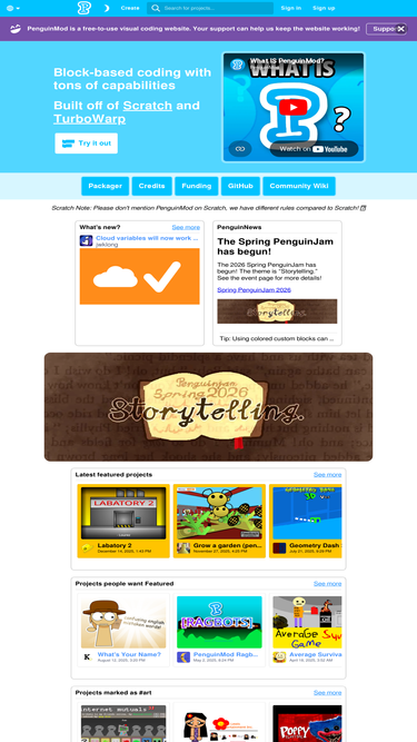 turbowarp is a scratch mod with a compiler to run projects faster, dark mode for your eyes, a bunch of addons to improve the editor, and more.
