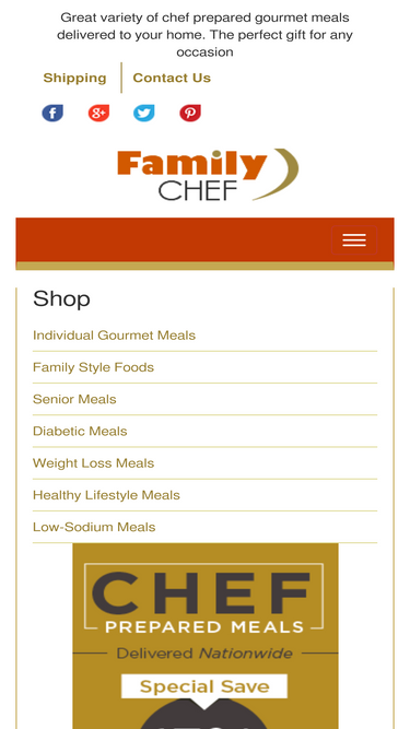 59%chef prepared gourmet meals delivered to your home. meal delivery services include, gourmet meals, diabetic meals, senior meals, weight loss meals and meal plans.