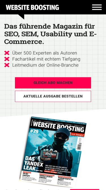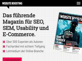 97%Das Magazin / die Zeitschrift Website Boosting erscheint alle 2 Monate und führt die Inhalte des gleichnamigen Fachbuchs konsequent weiter. Jetzt abonnieren!