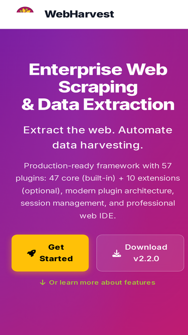 Professional web scraping framework with 57 plugins, modern IDE, and enterprise features. Extract data from any website with XML-based configuration.
