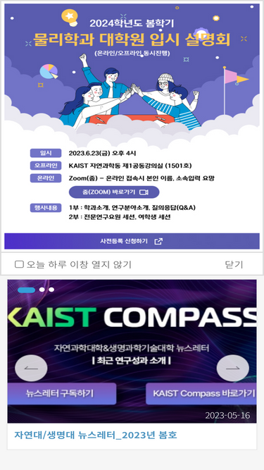 92%“ 한국물리학회 공식 캐릭터의 얼굴을 찾습니다 ” 한국물리학회는 물리학 및 학회 활동에 대한 국민적 관심과 친밀도를 높이기 위해 공식 캐릭터를 제작하고자 합니다. 캐릭터 이름은 사전 내부 검토를 통해 ‘피직이’, ‘물링이’, ‘김평식’ 세 가지로 확정되었습니다. (아래 ■공모 주제 참고) 본 공모전에서는...