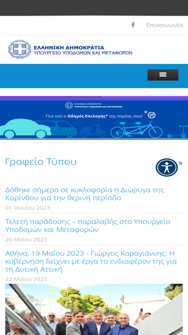 62%Αποστολή του Υπουργείου Υποδομών και Μεταφορών είναι: α. Ο στρατηγικός σχεδιασμός και η υλοποίηση των έργων Υποδομής της χώρας. β. Η χάραξη και εφαρμογή εθνικής πολιτικής και η δημιουργία κατάλληλου θεσμικού πλαισίου, σε ευρωπαϊκό και διεθνές επίπεδο, για την ανάπτυξη μεταφορικών και συγκοινωνιακών υπηρεσιών υψηλής ποιότητας, σε συνθήκες υγιούς ανταγωνισμού. γ. Η εξειδίκευση και η εφαρμογή εθνικής πολιτικής στις δημόσιες υποδομές. δ. Η χάραξη και εφαρμογή πολιτικών για την ανάπτυξη συγκοινωνιακών και άλλων υποδομών σε εθνικό επίπεδο με σκοπό την ενίσχυση της κινητικότητας, της προσβασιμότητας και την ενδυνάμωση της οικονομίας. ε. Η χάραξη και εφαρμογή ολοκληρωμένης εθνικής πολιτικής για την προαγωγή της οδικής ασφάλειας και της ασφαλούς μετακίνησης, μέσα από συντονισμένες δράσεις και παρεμβάσεις ευρείας κλίμακας. στ. Η προαγωγή της ασφάλειας στις υποδομές και μεταφορές. ζ. Η υποβοήθηση δράσεων της Τοπικής Αυτοδιοίκησης (Α’ και Β’ βαθμού) στην ανάπτυξη των βασικών υποδομών της χώρας. η. Ο συντονισμός και η συμμετοχή σε διεθνείς Οργανισμούς ή μέσα συνεργασίας που δραστηριοποιούνται στον σχεδιασμό και στην ανάπτυξη των διευρωπαϊκών δικτύων μεταφορών και διασυνοριακών συνδέσεων. θ. Ο συντονισμός των εποπτευομένων φορέων και η εποπτεία των προγραμμάτων δράσης αυτών.