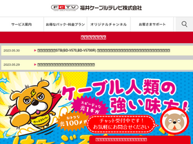 74%福井ケーブルテレビのホームページです。ケーブルテレビサービスのご案内のほか、番組案内、インターネットサービス、スマートフォンサービスのご紹介、お客様サポートを行っています。