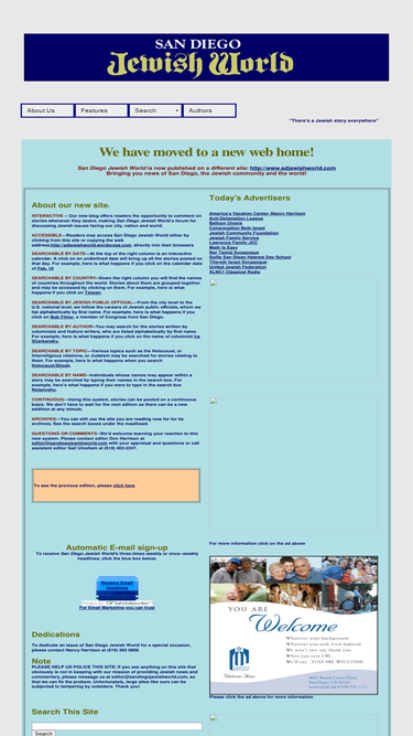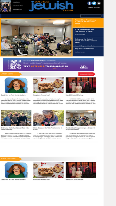 39%read the award-winning monthly magazine covering jewish stories in san diego. featuring foreign correspondence, theatre previews, local event listings and more.