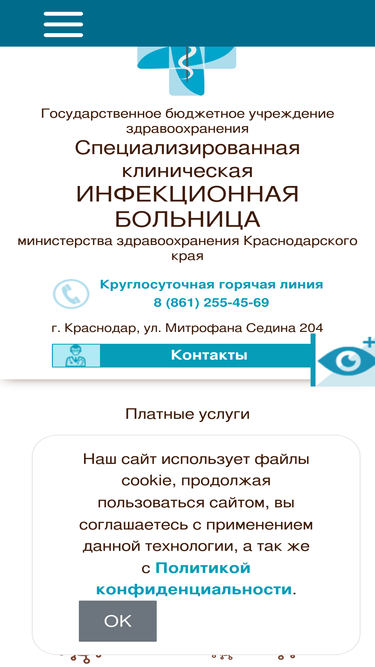 100%официальный сайт государственного бюджетного учреждения здравоохранения "специализированная клиническая инфекционная больница" министерства здравоохранения краснодарского края