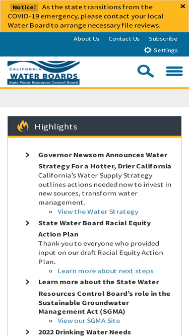 100%the state water resources control board web site covers california water quality and rights regulation, board meetings, laws, funding, watershed management, enforcement, citizen involvement, news and education.