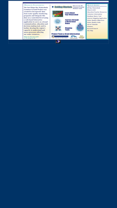 100%the san diego bay watersheds common ground project was created to incorporate data from water quality monitoring programs and integrate this data on a watershed level using a web-based interactive application to serve as a broad communication, education and decision-making tool; and to further develop the region's capacity to understand and assess processes affecting our water resources.