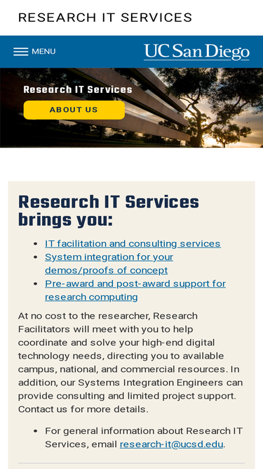 83%uc san diego research it services. consulting on information storage and technology resources for uc san diego researchers.