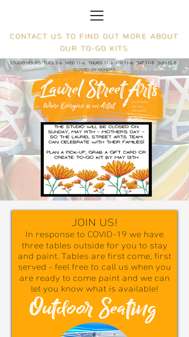 95%Laurel Street Arts is a locally-owned, full-service, crafts studio specializing in pottery painting, mosaics, and glass fusing.