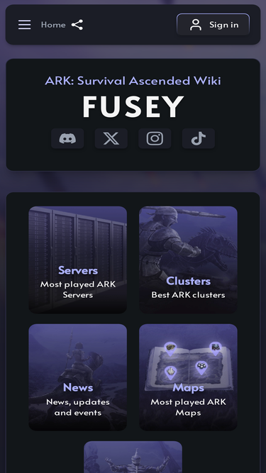 65%Discover the ultimate ARK: Survival Ascended Wiki with Fusey! Track live player stats for mods, find the top ARK server list, explore interactive resource maps, and stay updated with the latest ARK news and events. Fusey is your go-to platform for everything ARK.