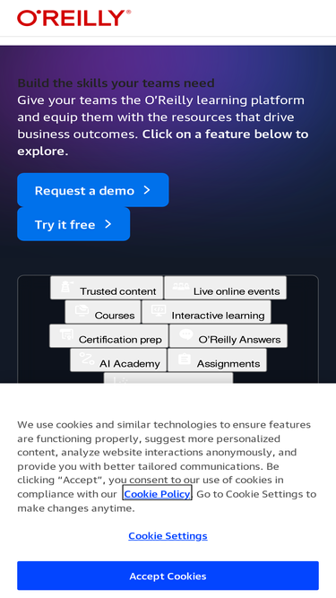 98%gain technology and business knowledge and hone your skills with learning resources created and curated by o'reilly's experts: live online training, video, books, our platform has content from 200+ of the worldâs best publishers.