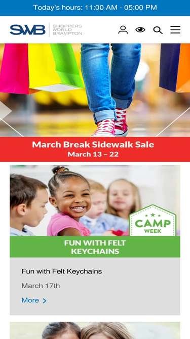 100%shoppers world brampton is your world next door with over 140+ shops and services to suit your everyday shopping needs. swb is a one level centre with lots of free parking, a brampton transit terminal on-site, and is located near the downtown brampton core. it is home to some major retail brands suc...