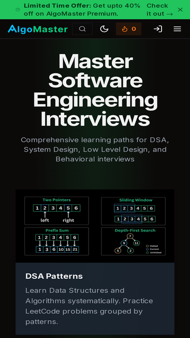 84%Master DSA, Coding Interview Patterns and System Design. Ace your Software Engineering interviews.