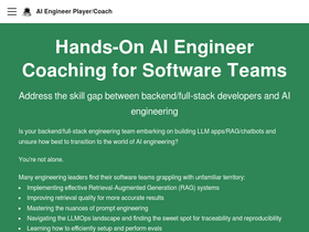 93%Expert consulting for software engineering teams transitioning to AI. Specializing in prompt engineering, LLMOps, evals, vector search, embedding models, RAG quality, and fostering an AI engineering mindset. Elevate your team's AI capabilities today.