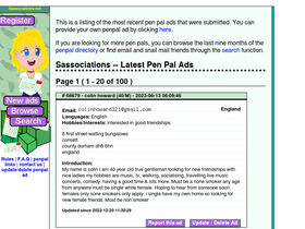 searching for postal or email pal to write to ? look no further, friend. sassociations is a free e-mail and snail mail penpal page for people interested in expanding their circle of friends.