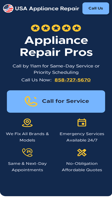 85%USA Appliance Repair offers 24/7 repair service for refrigerators, freezers, washers, dryers, dishwashers, stoves, ovens, and more!