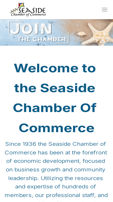 85%Directory Join Events Login Since 1936 the Seaside Chamber of Commerce has been at the forefront of economic development, focused on business growth and community leadership. Utilizing the resources and expertise of hundreds of members, our professional staff, and partnerships with many local organizations, the chamber is strategically positioned to continue building on the successes…