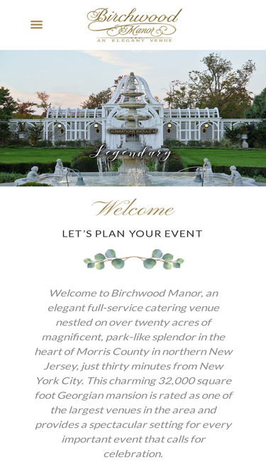 98%Birchwood Manor is an elegant full-service catering venue in northern NJ, just thirty minutes from NYC, specializing in weddings and special events.