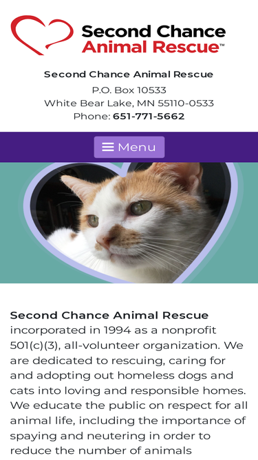 100%Website for organization helping pets and owners.