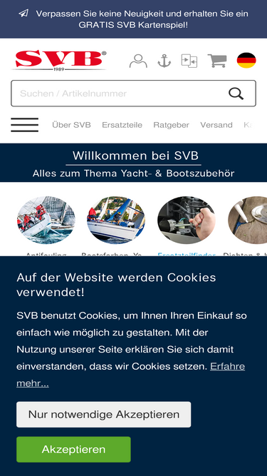 74%SVB - Europas größter Online-Shop für technische Wassersportausrüstung. Weltweite Lieferung, auf Wunsch auch direkt an Bord!