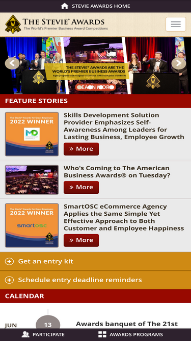 63%About The Stevie AwardsWhat are the Stevie Awards?How many different Stevie Awards competitions are there?What are the Stevie Awards for Women in Business?Who are the sponsors?Who governs the Awards?How long have the Stevie Awards been in existence?What are the categories?What will winners receive?Where can I find a list of past winners?