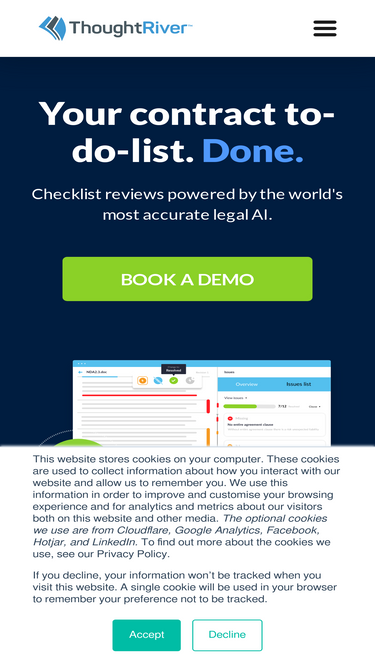 88%Depend on ThoughtRiver for precise contract reviews and analysis, reducing errors and enhancing legal decision-making with advanced AI technology.
