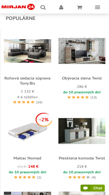 78%Slovenský výrobca nábytku ponúka široký sortiment nábytku - sedačky, čalúnené a drevené postele, kreslá pohovky a matrace. Navštívte naše predajne.