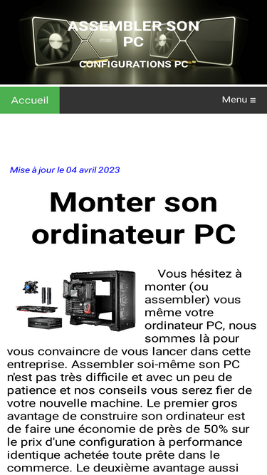 90%assembler ou monter son ordinateur pc, comment construire son pc, choisir ses composants informatiques, monter l'ordinateur et optimiser son pc, config pc gamer, config pc multimédia, config pc cao. bien choisir ses composants et assembler son ordinateur pc. installation de windows 10 ou 11 et optimisation avec suppression des mouchards ou espions. monter son pc gamer, monter son pc bureautique, monter son pc haut de gamme, monter son pc multimédia et htpc ou home theater personal computer. le choix des meilleurs composants informatiques pour réaliser son ordinateur.