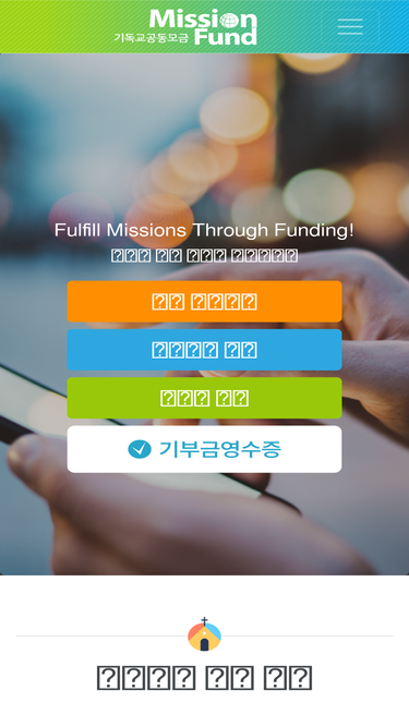 68%기독교 공동모금 [미션펀드]는 현재 12,000여 선교단체와 교회 및 선교사들의 모금 플랫폼으로 활용되고 있는 크라우드 펀딩 FinTech 사역으로서, KWMA(한국세계선교협의회)의 협력기구입니다. 교회, 선교단체, 선교사 뿐 아니라 성도개인의 모금을 돕고 지원하는 사역을 하고 있습니다.