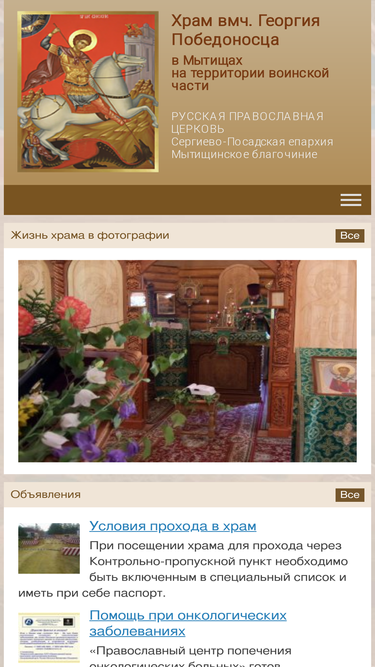 79%официальный сайт прихода храма великомученика и георгия победоносца в мытищах. храм расположен на территории воинской части.