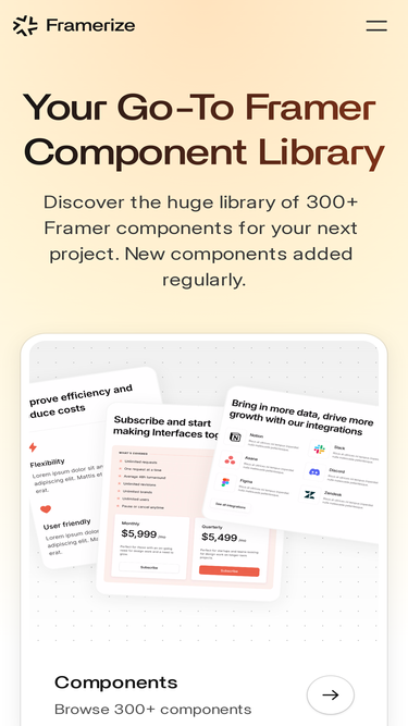 94%Stay updated with the latest Framerize components, templates, and new products to enhance your Framer projects.
