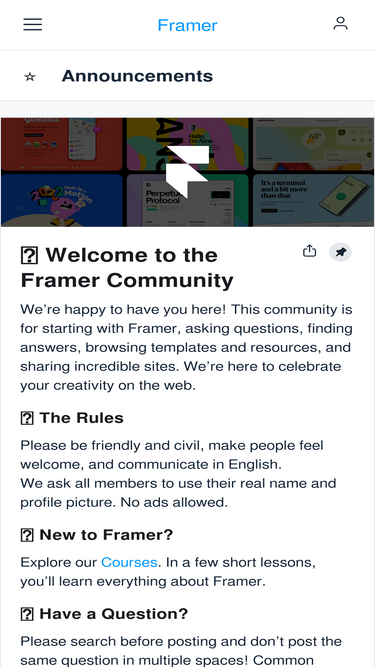 99%explore announcements space in framer