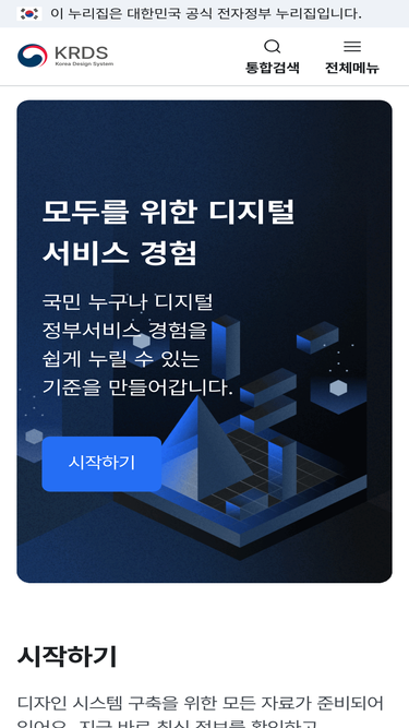 88%대한민국 정부 디자인 시스템 KRDS는 누구나 쉽게 정부 서비스를 경험할 수 있도록 가이드라인과 디자인 리소스 및 디자인 시스템 구축을 위한 모든 자료와 최신 정보를 제공한다.